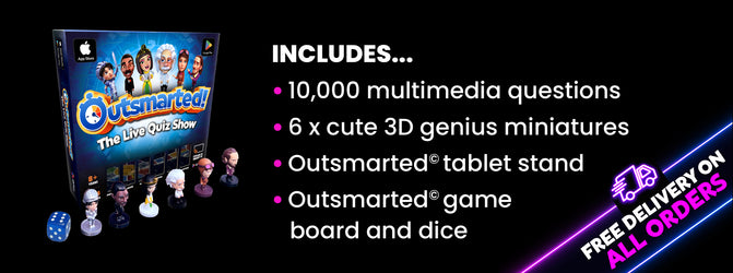 Outsmarted comes with 10,000+ questions brought to life with images, song clips and video. Divided into 10 core categories, they offer a perfectly balanced challenge for the whole family. In addition, there's always a selection of free bonus categories in the Outsmarted app.